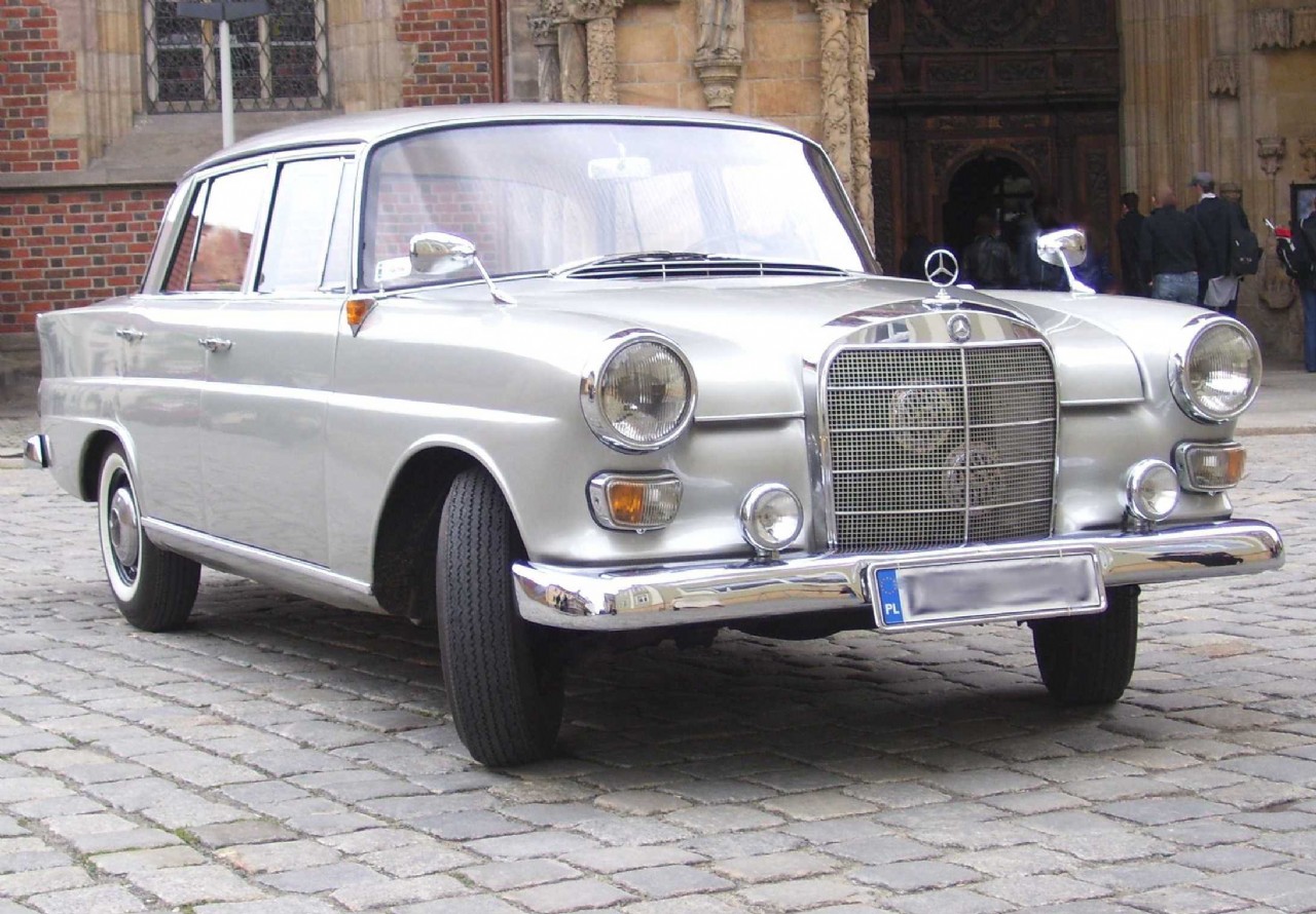 Mercedes added tailfins to both the big S-Class and the new W110 'Fintail' 190 of 1962. In the 1965 230 model a Straight-6 engine appeared for the first time, and the four cylinder engine grew in displacement.